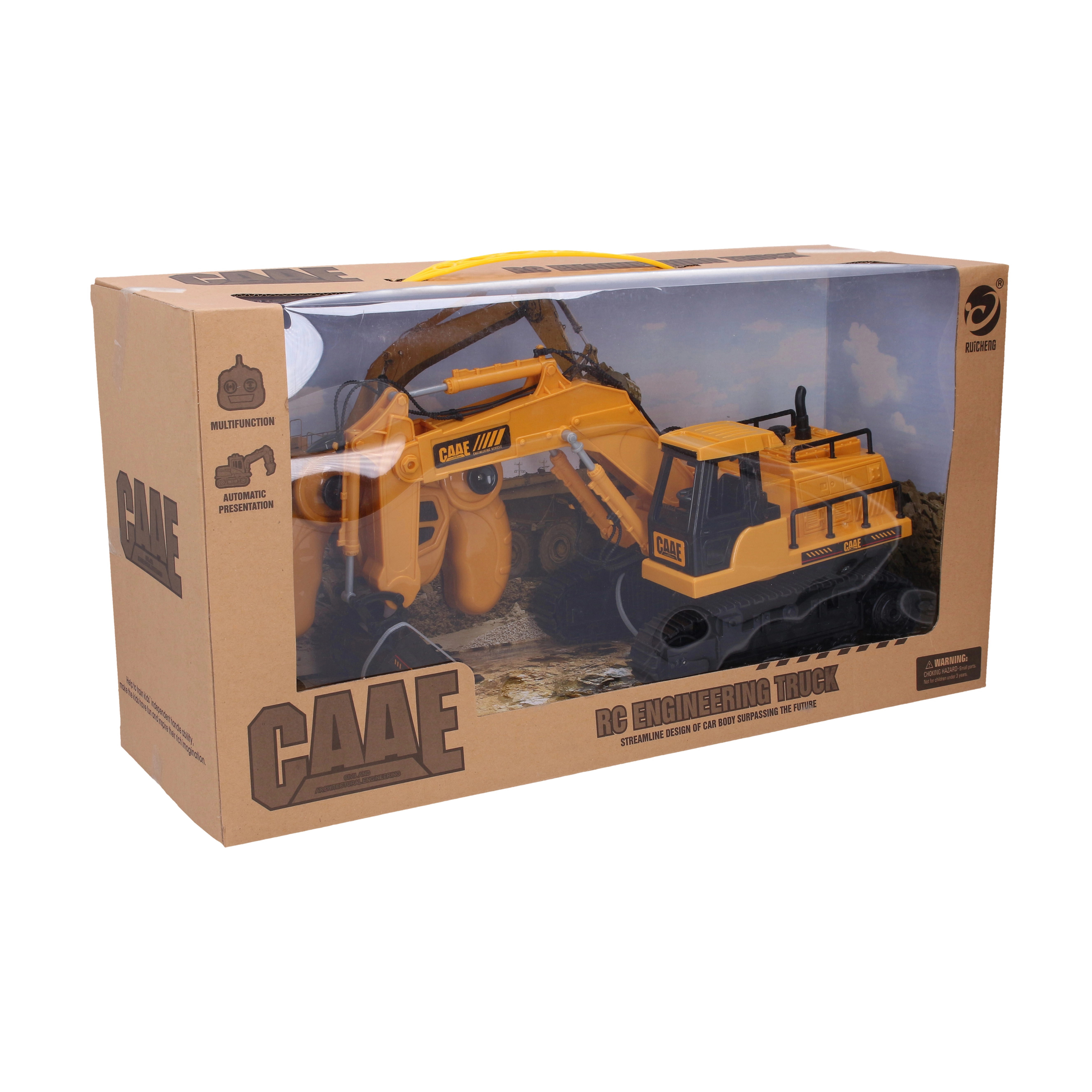 La télécommande ergonomique permet des manœuvres intuitives : marche avant et arrière, rotation, activation du mode démo et des sons. La pelle RC est idéale pour développer la motricité, la coordination et la créativité des enfants.