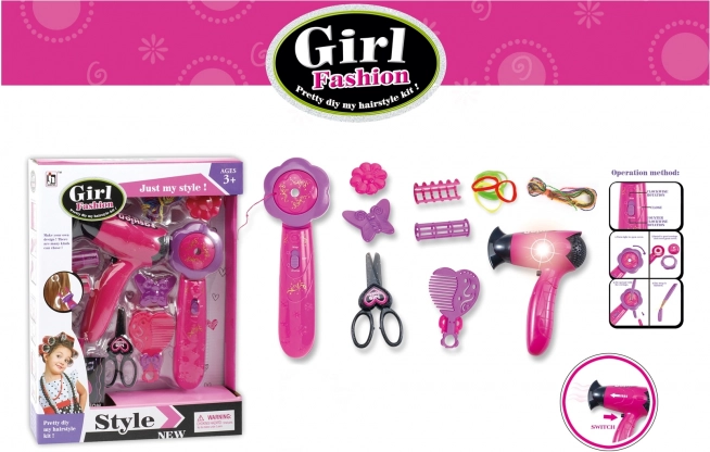 Coffret coiffure pour fillettes - deviens coiffeuse avec ce set créatif pour réaliser des coiffures de fête.