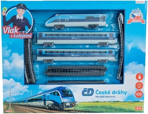 Découvrez le plaisir des rails avec un coffret de train réaliste inspiré des CHEMINS DE FER TCHÈQUES – la rame comprend une locomotive avec son et lumière, deux wagons et un réseau de voies de 4,8 m. Grâce à l’alimentation par 2× piles AA, la locomotive roule, s’illumine et émet des sons authentiques. Le coffret peut être combiné avec le train REGIOJET et étendu avec des rails et des aiguillages supplémentaires.