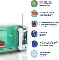 Décorez la petite cuisine de votre jeune chef avec un micro-ondes pour enfants de luxe doté d’un panneau tactile. Ce micro-ondes interactif émet des sons comme un vrai et s’illumine. La programmation inclut la rotation de l’assiette avec une imitation de plat à l’intérieur du micro-ondes.