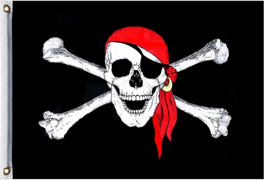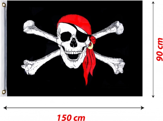 Découvrez ce drapeau pirate avec un motif effrayant pour de vrais pirates, équipé de trous pour une fixation facile.