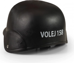 - pistolet-mitrailleur, gilet de protection avec inscriptions en tchèque, grenade, talkie-walkie, montre, badge, lunettes, casque