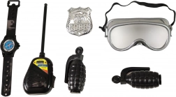 Talkie-walkie, montre, grenade, badge et lunettes – tout ce dont le petit policier a besoin pour communiquer avec « son équipe » et vivre une aventure authentique.