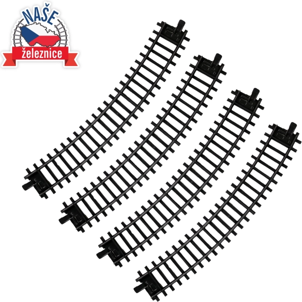 Étendez votre circuit ferroviaire avec un set de rails courbes en lot de 4 pièces. Compatible avec les trains RegioJet, Chemins de fer tchèques, SC Pendolino et Compagnie des chemins de fer slovaques. Ajoutez plus de divertissement et une plus longue voie de circulation pour vos trains miniatures.