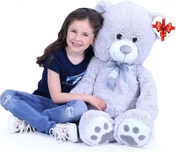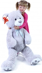 Grand ours en peluche gris d’environ 100 cm de long, qui séduit par sa douceur, son côté câlin et sa finition de qualité. Sa surface moelleuse invite aux câlins, le ruban satiné ajoute une touche d’élégance et l’étiquette en forme de cœur permet d’ajouter un message personnel – idéal pour les anniversaires, les fêtes ou comme décoration dans la chambre d’enfant.