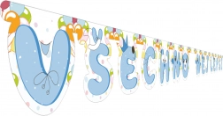Super idée pour une fête - guirlande 'Tous nos vœux' dans un élégant design bleu ! Déroulez-la facilement et suspendez-la à n'importe quel endroit.