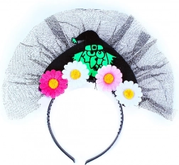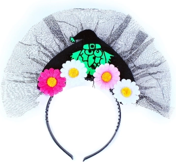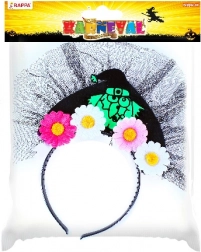 Enrichissez votre costume d'Halloween ou de carnaval avec ce serre-tête sorcière, décoré de fleurs colorées – l'accessoire idéal pour chaque fête.