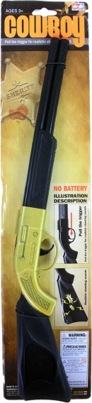 Ce fusil d'or cowboy apporte l'ambiance du Far West dans la chambre des enfants. Grâce à sa couleur dorée et à sa réalisation réaliste, les enfants peuvent s'imaginer être les héros de leur propre aventure western. Le fusil est conçu pour être facilement maniable, ce qui favorise un jeu en toute sécurité. Le son de tir sans piles accroît l'authenticité du jeu et permet un divertissement sans limites.