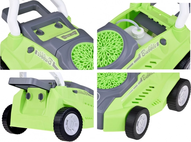 Démarrer l’amusement est très facile - il suffit de remplir le réservoir avec du liquide à bulles de savon et d’appuyer sur le bouton pour mettre la tondeuse en marche. De belles bulles de savon s’envoleront rapidement dans les airs, se disperseront autour et créeront une atmosphère magique.