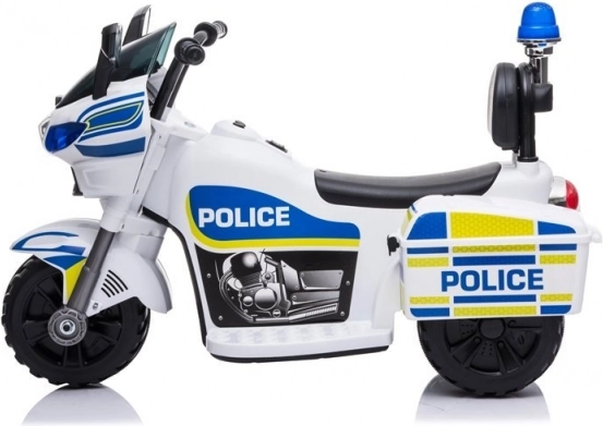 Cette moto de police électrique pour enfants reproduit fidèlement une vraie machine – de la forme du carénage jusqu’au gyrophare bleu. Une construction robuste en matériaux de qualité garantit une longue durée de vie, tandis que les trois roues larges avec bande centrale en caoutchouc offrent stabilité et meilleure adhérence sur différents types de sol.