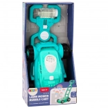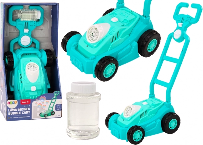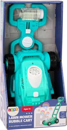 Tondeuse à gazon à bulles de savon de couleur verte avec liquide spécial, idéale pour de super aventures en plein air. En plus de sa fonction esthétique, la tondeuse permet à l’enfant d’imaginer travailler sur une vraie pelouse, ce qui provoque un sourire sincère.