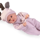 Nous vous présentons la poupée Kika de la marque Antonio Juan, qui se distingue par son aspect réaliste et sa fonctionnalité. Une fois la tétine retirée de la bouche, elle émet des sons de bébé qui pleure et dit "maman", "papa", qui sonnent étonnamment authentiques. La poupée est dotée d'un corps en tissu doux, tandis que la tête et les membres sont en vinyle souple de haute qualité.