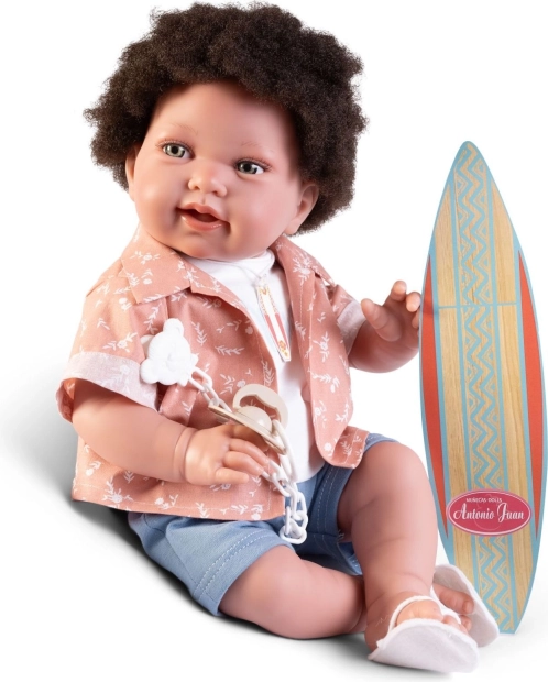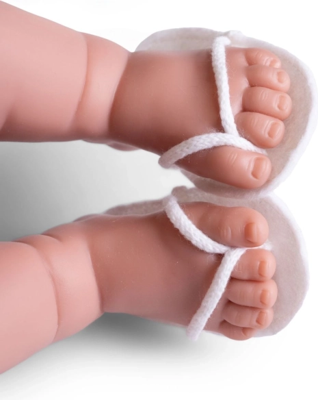 La poupée possède une tête et des membres en vinyle spécial assoupli, agréable au toucher, ainsi qu’un corps souple en tissu. Grâce à l’utilisation de coton biologique dans certains vêtements, Antonio Juan soutient une production écoresponsable, se positionnant comme un pionnier dans son domaine.