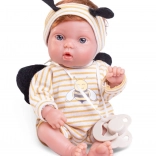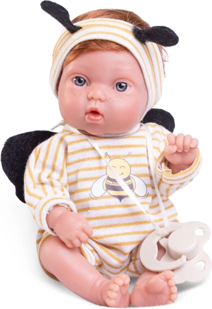 La poupée est habillée d’un costume d’abeille avec antennes et une tétine fonctionnelle, qui attire l’attention des enfants.