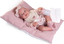 L'emballage comprend un biberon remplissable d'eau et deux couches jetables. L'ensemble complet est soigneusement placé dans une boîte cadeau, ce qui en fait un cadeau parfait pour toutes les occasions. La poupée de 42 cm est idéale pour les enfants à partir de 3 ans, soutenant le jeu créatif et les soins.