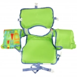 Le rembourrage en mousse de la veste assure une excellente flottabilité, tandis que les manches attachées recouvertes de matériau doux maintiennent l'enfant à flot sans problème. Les boucles réglables assurent un ajustement parfait au corps de l'enfant, garantissant le confort pendant le jeu. La veste se distingue par son design vert éclatant et son motif intéressant qui attire l'attention, rendant l'enfant visible même de loin.
