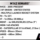 Le modèle HIMARS offre une construction réaliste à l’échelle 1:35, vous permettant d’assembler le modèle selon vos préférences et vos marquages, grâce à un riche ensemble de pièces. Votre modèle peut atteindre une longueur de 20,5 cm et complètera votre collection de véhicules et d’aéronefs militaires modernes.