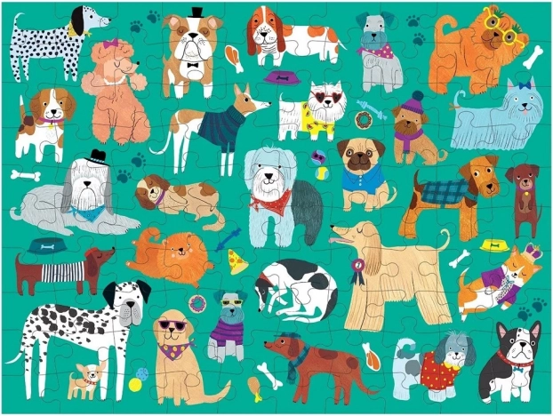 Ce puzzle recto-verso offre deux fois plus de plaisir : d’un côté, de jolies illustrations de chiens, de l’autre, de magnifiques chats. Avec ses 100 pièces, il est idéal pour les enfants dès 6 ans ainsi que pour des moments de puzzle en famille. Sa qualité de fabrication et ses couleurs vives favorisent la concentration et entraînent la mémoire visuelle.