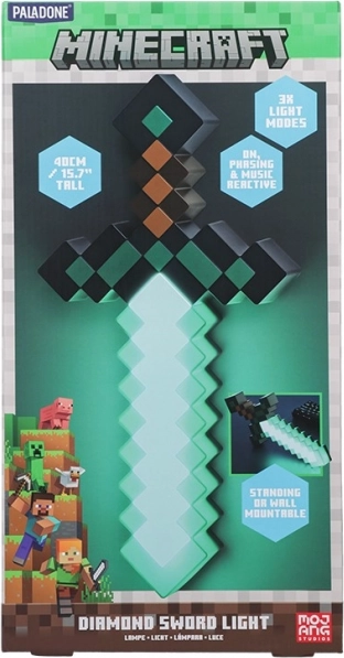 Apportez une ambiance ludique à votre intérieur avec cette Épée en diamant lumineuse Minecraft. Cette épée lumineuse propose trois modes d'éclairage différents : allumage constant, transition, et mode réactif à la musique. Idéale pour les soirées amusantes ou comme décoration stylée pour les fans de Minecraft. Mesurant 40 cm de hauteur, elle peut être facilement placée sur une table ou fixée au mur.
