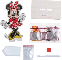 Offrez à la célèbre MINNIE MOUSE une brillance unique ! Grâce aux zones clairement indiquées et au stylet d’application, placez facilement chaque strass au bon endroit. Le résultat est une décoration éblouissante sur une plaque en bois, que vous pouvez exposer sur le support inclus.