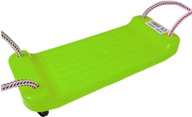 Balançoire pour enfants en plastique vert, en forme d’assise plate, dès 3 ans, pour des heures de mouvement et de jeu à la maison comme au jardin. Elle dispose de cordes robustes avec fixations, d’une installation facile, est légère et résistante et répond aux certifications CE et EN 71. Charge maximale 50 kg.