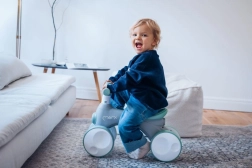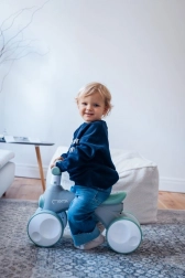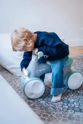 MoMi TOBIS est une draisienne conçue pour les plus jeunes pilotes : sa structure stable à quatre roues favorise l’équilibre et la coordination, tandis que ses fonctions attractives retiennent l’attention des enfants. D’une simple pression, des bulles magiques se déclenchent, la lumière avant change de couleur et un klaxon ajoute encore plus de fun.