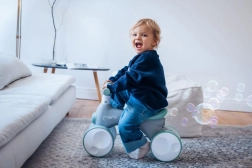 Un générateur de bulles intégré libère un flot de bulles d’une simple pression. Les enfants adorent cet effet visuel et la draisienne devient aussitôt le centre de l’attention.
