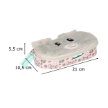 Un devant tout doux en peluche avec oreilles et broderie donne à la trousse un look ludique que les enfants adorent.