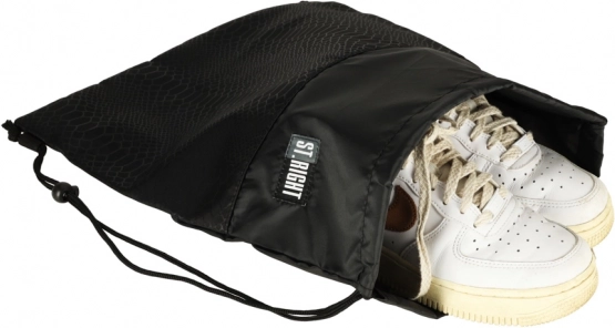 Le sac à chaussures léger et résistant ST. RIGHT est un excellent choix pour les élèves, les sportifs et tous ceux qui recherchent une solution simple et fiable pour transporter des chaussures et des vêtements de sport. Le design minimaliste en noir est complété par un logo discret et un motif texturé au rendu moderne et universel.