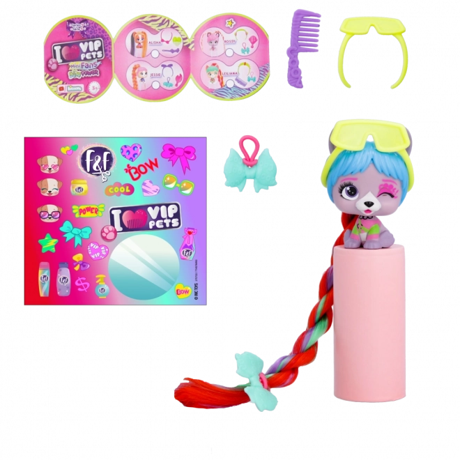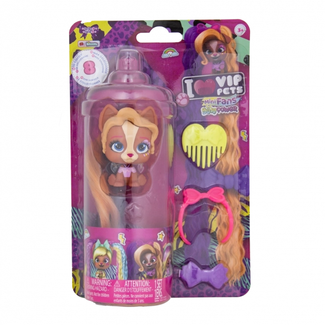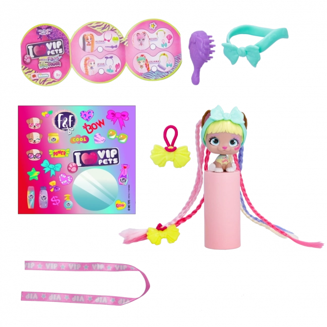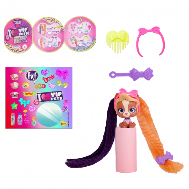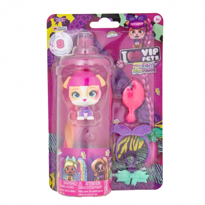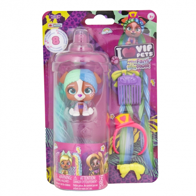 VIP Pets Mini Fans Bow Power est une collection qui propose 8 mini chiots différents, chacun avec des accessoires capillaires absolument uniques. Ces adorables chiots suivent la toute dernière tendance Bow Power. À l’intérieur de l’emballage, vous trouverez :
