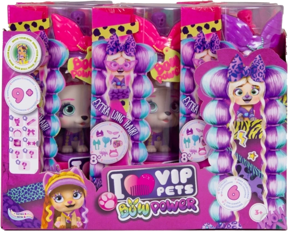 VIP PETS coiffures urbaines - Bow Power présente une collection de six adorables chiens prêts pour des transformations stylées. Chaque chien dispose d’accessoires capillaires supplémentaires pour une création capillaire créative. L’emballage contient plus de 9 surprises, dont un fauteuil de coiffure pour styliser les cheveux.