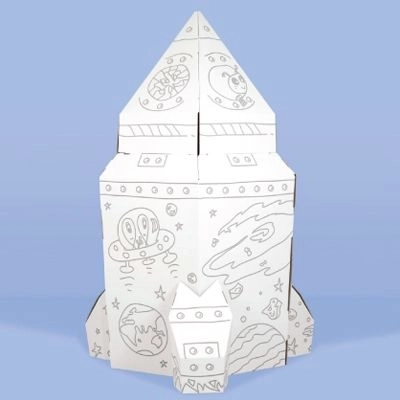 Cette grande fusée en carton, une fois assemblée, se transforme en un élément de jeu impressionnant qui stimule l’imagination et le jeu créatif. Grâce à sa conception en carton robuste, elle est légère et facile à transporter.