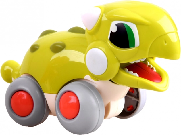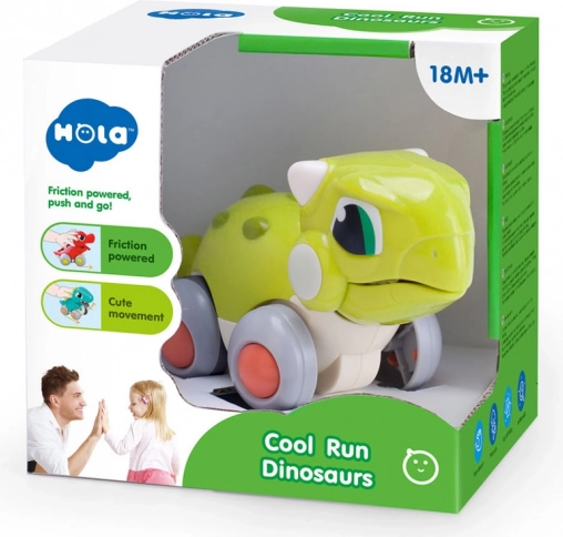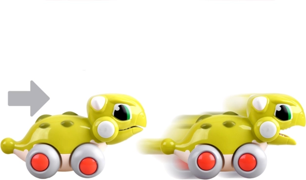 Adorable dinosaure vert sur roulettes qui ravira les petits passionnés de la préhistoire. Grâce au système push-and-go, il démarre facilement, possède une propulsion à friction, une mâchoire mobile en roulant et ne nécessite aucune pile. Idéal pour les enfants à partir de 18 mois.