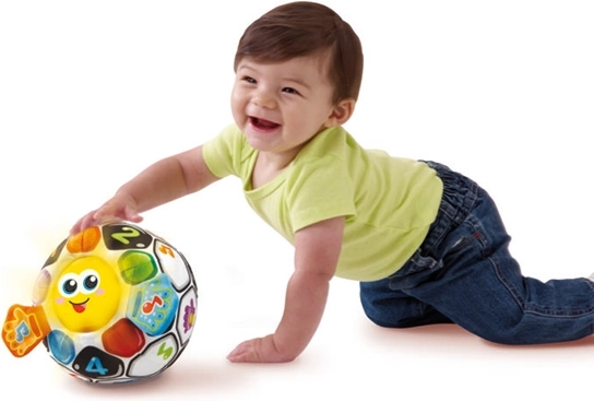 Grâce à ses capacités, la balle peut rouler devant les enfants, ce qui attire leur attention et les motive à observer, ramper et jouer. Ce ballon coloré avec différentes textures et effets sonores développe non seulement la perception sensorielle, mais fournit également une stimulation tactile grâce à son revêtement en peluche douce. Les effets lumineux et sonores, complétés par un visage lumineux et des boutons orange, contribuent à la reconnaissance des couleurs.