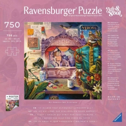 Le coffret comprend une grande affiche à l’échelle 1:1 pour faciliter l’assemblage, ainsi que l’histoire de l’illustration et des informations sur l’auteur (EN/DE/FR/IT/ES). Le puzzle est en outre emballé de manière écologique — sans film extérieur et avec les pièces dans un sachet en papier.