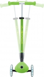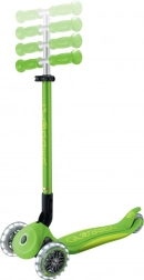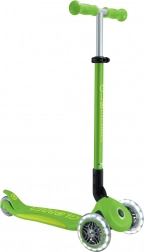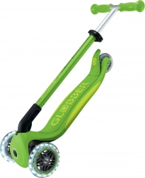 La trottinette GLOBBER Primo Foldable Plus Lights se distingue par sa combinaison de stabilité, de sécurité et de plaisir. Deux grandes roues avant de 120 mm avec LED à dynamo attirent l’attention au premier regard et améliorent la visibilité. Le plateau bas et large avec surface antidérapante favorise une posture sûre et une manipulation aisée pour les débutants.