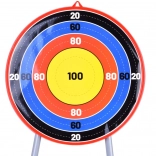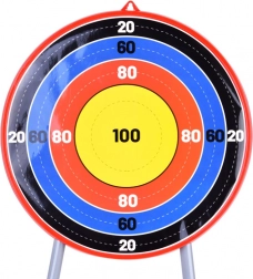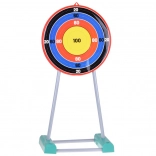 Cible sur pied avec des cercles colorés et un score, permettant d'améliorer la visée.