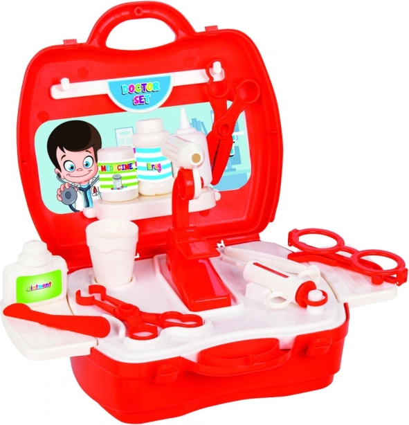 Cette malette de docteur pour enfants offre tout le nécessaire pour un jeu de docteur amusant et éducatif. La valisette rouge est facile à transporter, se ferme rapidement et garde toutes les pièces bien rangées – idéale à la maison comme en voyage.