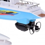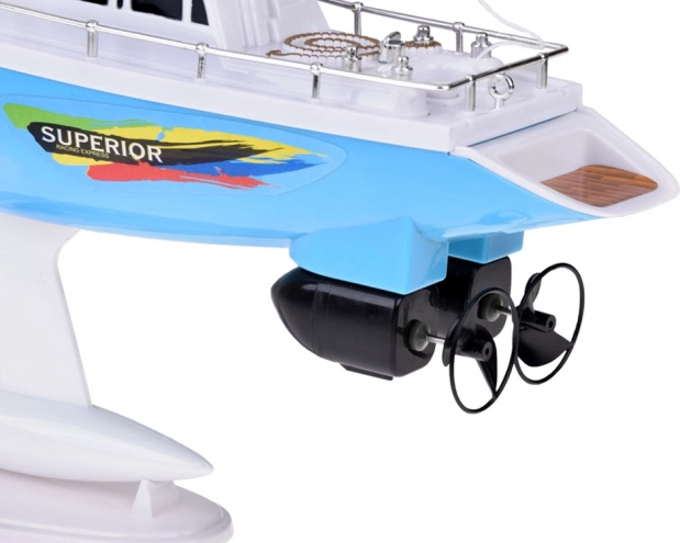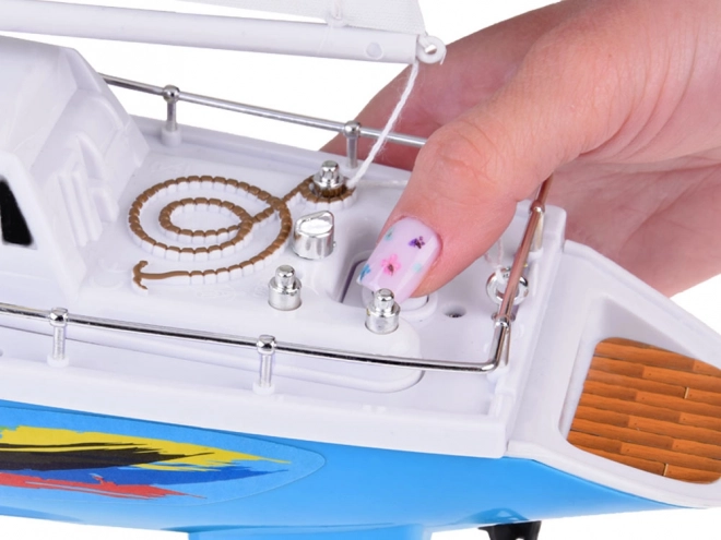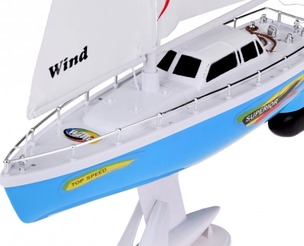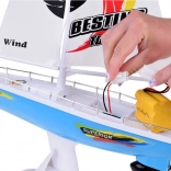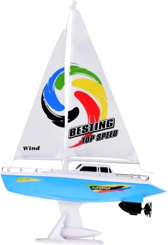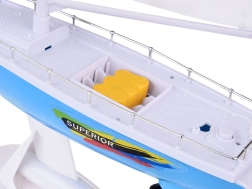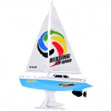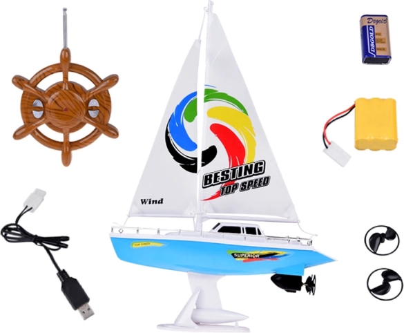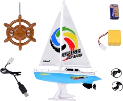 Un voilier RC élégant en bleu et blanc avec des voiles réalistes offre aux enfants des heures de plaisir sur l'eau. La commande est assurée par une télécommande à volant fonctionnant à la fréquence 27 MHz, avec double hélice, quille de stabilisation, balustrades chromées et un support pour l'exposition. L'emballage comprend un accumulateur rechargeable, un câble USB et une hélice de rechange.
