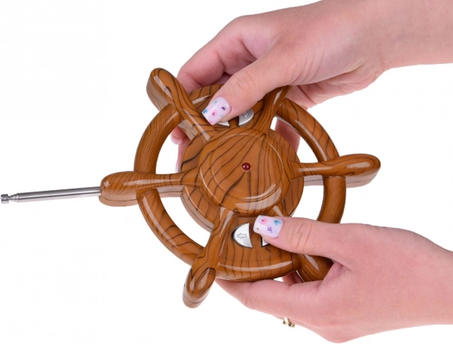 La télécommande en forme de gouvernail tient parfaitement en main et, à la fréquence de 27 MHz, permet une navigation fluide avant/arrière ainsi que des virages latéraux précis.