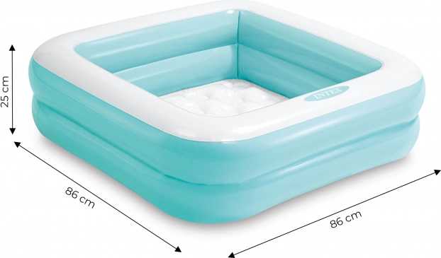 Dimensions : 86 x 86 x 25 cm, capacité : 57 litres, matériau : PVC (épaisseur de 0,25 mm), poids : 1 kg.