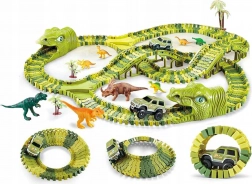 Créez votre propre parc de dinosaures avec une piste de course flexible, une petite voiture électrique et un riche ensemble de figurines et d’arbres. Grâce à 240 pièces de piste, à des tunnels en forme de tête de dinosaure et à des ponts, vous construirez des dizaines de configurations qui stimulent la créativité, la motricité fine et le jeu imaginatif. La petite voiture à pile roule toute seule et la piste offre une excellente adhérence et une conduite fluide.
