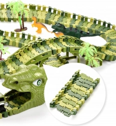 Offrez aux enfants un monde d’aventures préhistoriques. Le set contient tout pour des heures de jeu créatif : une piste verte modulaire, 8 dinosaures (dont 2 grands), 2 tunnels en forme de tête de dinosaure, des ponts, des arbres et une petite voiture électrique fonctionnant avec une pile AA. Les pièces s’emboîtent facilement pour former un circuit sur lequel la voiture roule toute seule.