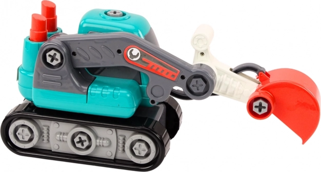 Cette pelle à chenilles au style dessin animé, de couleur turquoise, ravira tout enfant passionné par les chantiers et la technologie. Grâce aux vis et aux outils fournis, les enfants peuvent démonter et remonter le véhicule eux-mêmes, développant ainsi patience, logique et dextérité.
