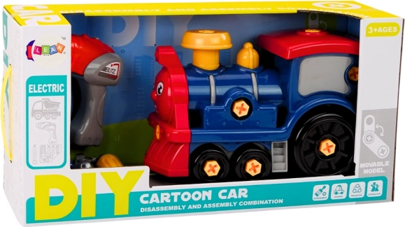 Un jouet ludique et éducatif pour petits constructeurs : une locomotive à assembler de couleur bleu foncé avec des outils, qui développe la motricité fine, la concentration et la créativité. Inclus une perceuse pour enfants, un tournevis et des embouts interchangeables pour un démontage et un assemblage faciles. Le jouet est certifié CE, conforme à la norme EN71 et convient aux enfants à partir de 3 ans. La perceuse fonctionne avec 3× 1,5 V AAA (piles non incluses).