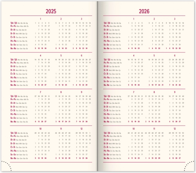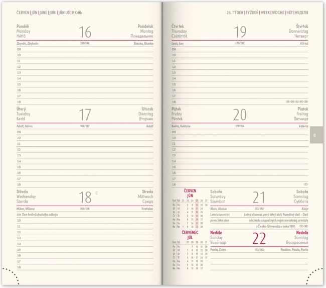 - Programme hebdomadaire avec un calendrier tchéco-slovaque et des langues supplémentaires.