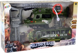 Set militaire avec hélicoptère, véhicule de combat, tour de contrôle et figurine de soldat