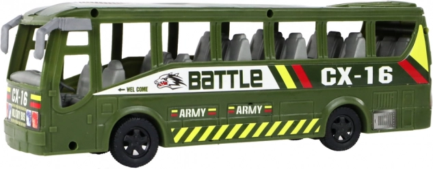 Bus/transporteur vert robuste avec inscriptions militaires, élargissant les possibilités de jeu au sol. Idéal pour le transport des unités et de l’équipement.