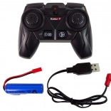 La commande par télécommande est très simple. Elle permet de diriger le véhicule vers l’avant, l’arrière et sur les côtés. Sa fréquence de fonctionnement est de 2,4 GHz. Grâce à sa forme, la télécommande tient confortablement en main et son utilisation est intuitive. Tracteur interactif télécommandé, à l’échelle 1:24
