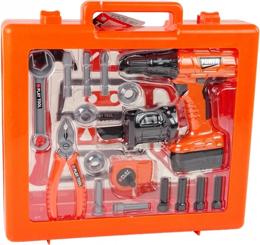 .Les outils sont très bien réalisés, entièrement en plastique. Grâce à la mallette dans laquelle ils sont rangés, vous pourrez toujours les remettre à leur place après le travail et les transporter facilement d’un endroit à l’autre. À l’intérieur se trouvent 27 éléments de bricolage.